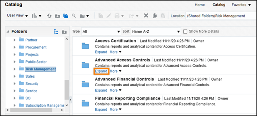 Step 6: In this specific case, we are focusing on the “Risk Management Cloud: Advanced Access Controls” analysis, which provides information related to Oracle Advanced Access Controls.